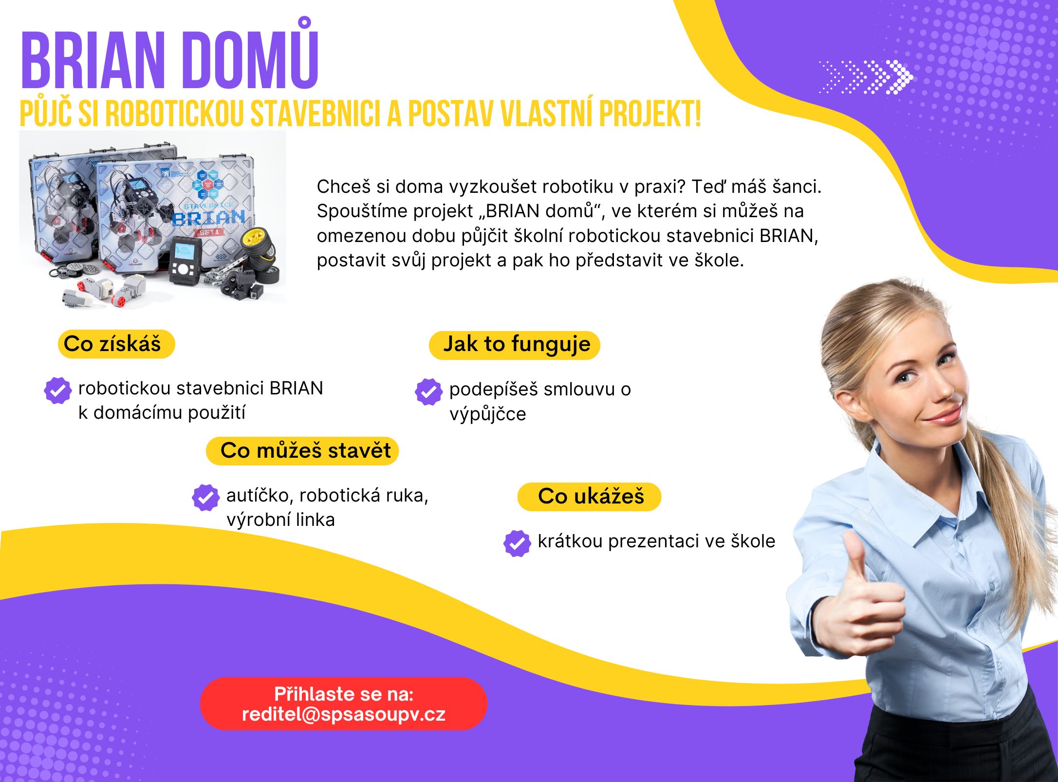 Půjč si robotickou stavebnici a postav vlastní projekt! Chceš si doma vyzkoušet robotiku v praxi? Teď máš šanci.Spouštíme projekt „BRIAN …
