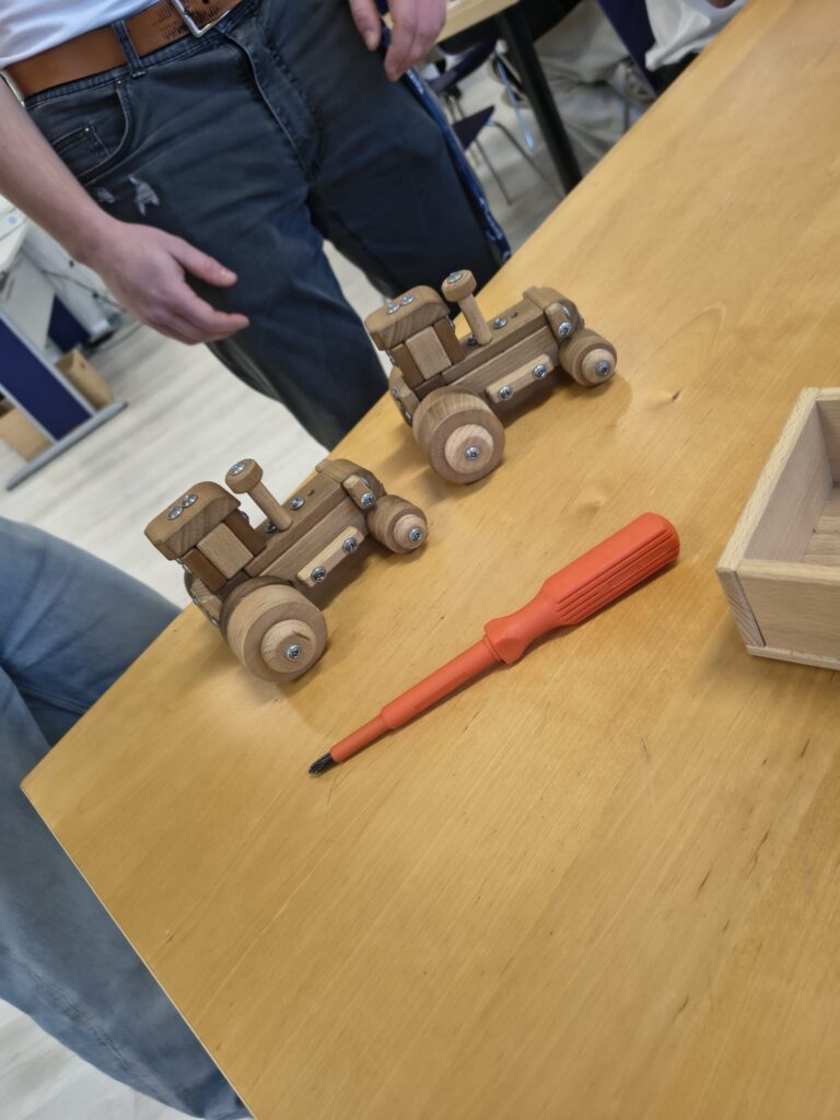 Druhá část programu probíhala pod vedením vyučujících z Katedry managementu kvality a byla pojata hravou, projektovou formou. Na jednoduchém modelu stavebnice traktoru byla simulována výrobní linka firmy. Žáci měli za úkol zorganizovat „výrobu“ v daném časovém rámci – navrhnout podle technické dokumentace postup kompletace, rozmístit montážní pracoviště a nastavit koordinaci týmu tak, aby byl celý proces co nejefektivnější. Aktivita byla zaměřena na rozvoj komunikace, organizace práce kolektivu a manuální zručnosti.