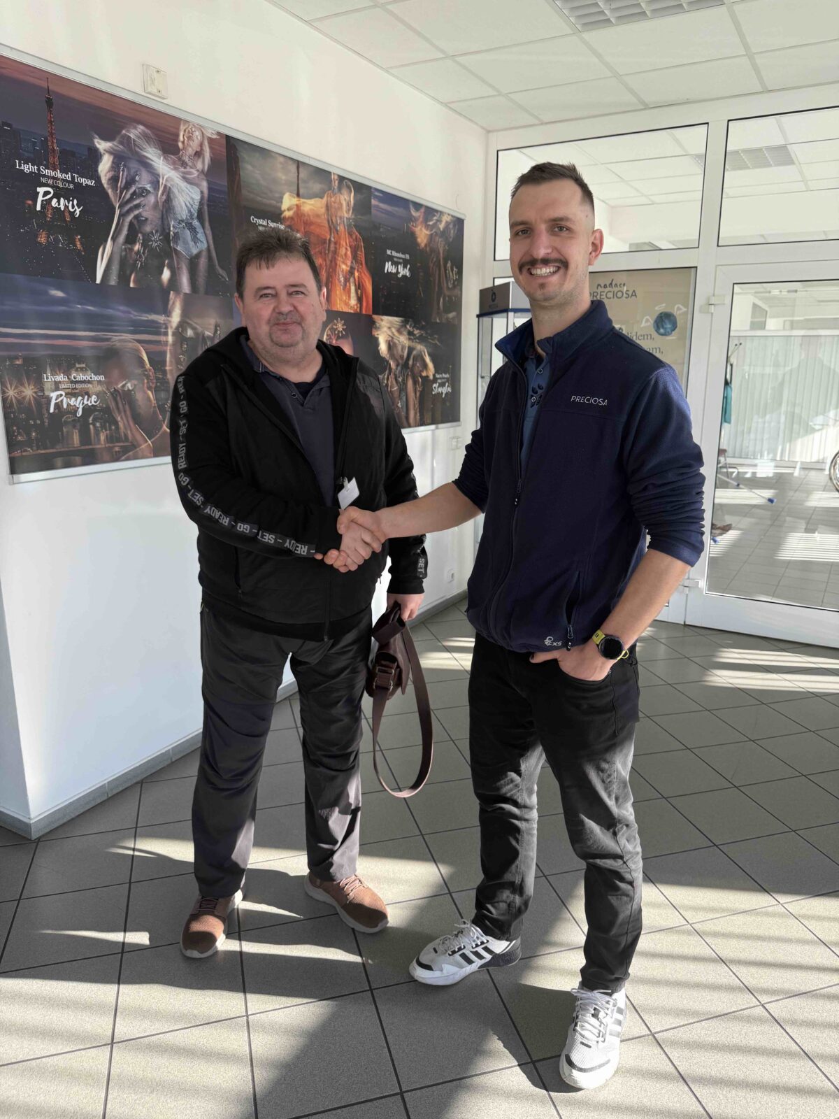 Včera navštívil výrobní závod PRECIOSA náš vedoucí učitel odborného výcviku pan Kadlec, a dnes jsme měli to potěšení přivítat zástupce společnosti v našich školních dílnách. Během návštěvy byl škole předán vybraný materiál pro praktickou výuku a také tři svěráky, které již nebyly ve firmě využívány a nyní najdou nové uplatnění v našich odborných učebnách. Tímto společnosti PRECIOSA děkujeme za podporu a vstřícnost.